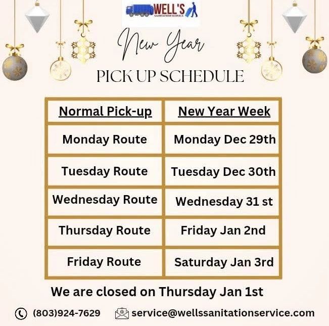 Mailing Address: P.O. Box 685 Newberry SC, 29108 Office & Sales: (803)924-7629 Email: service@wellssanitationservice.com or wellstrashservice@yahoo.com